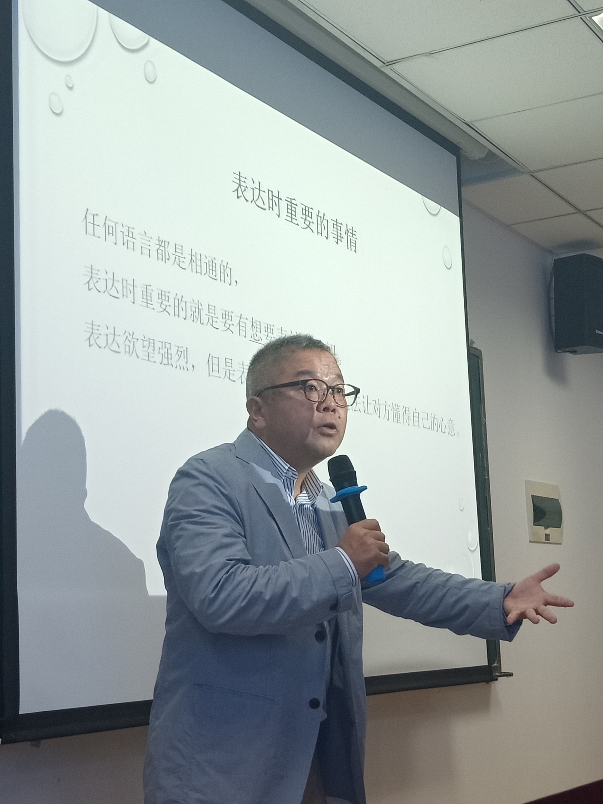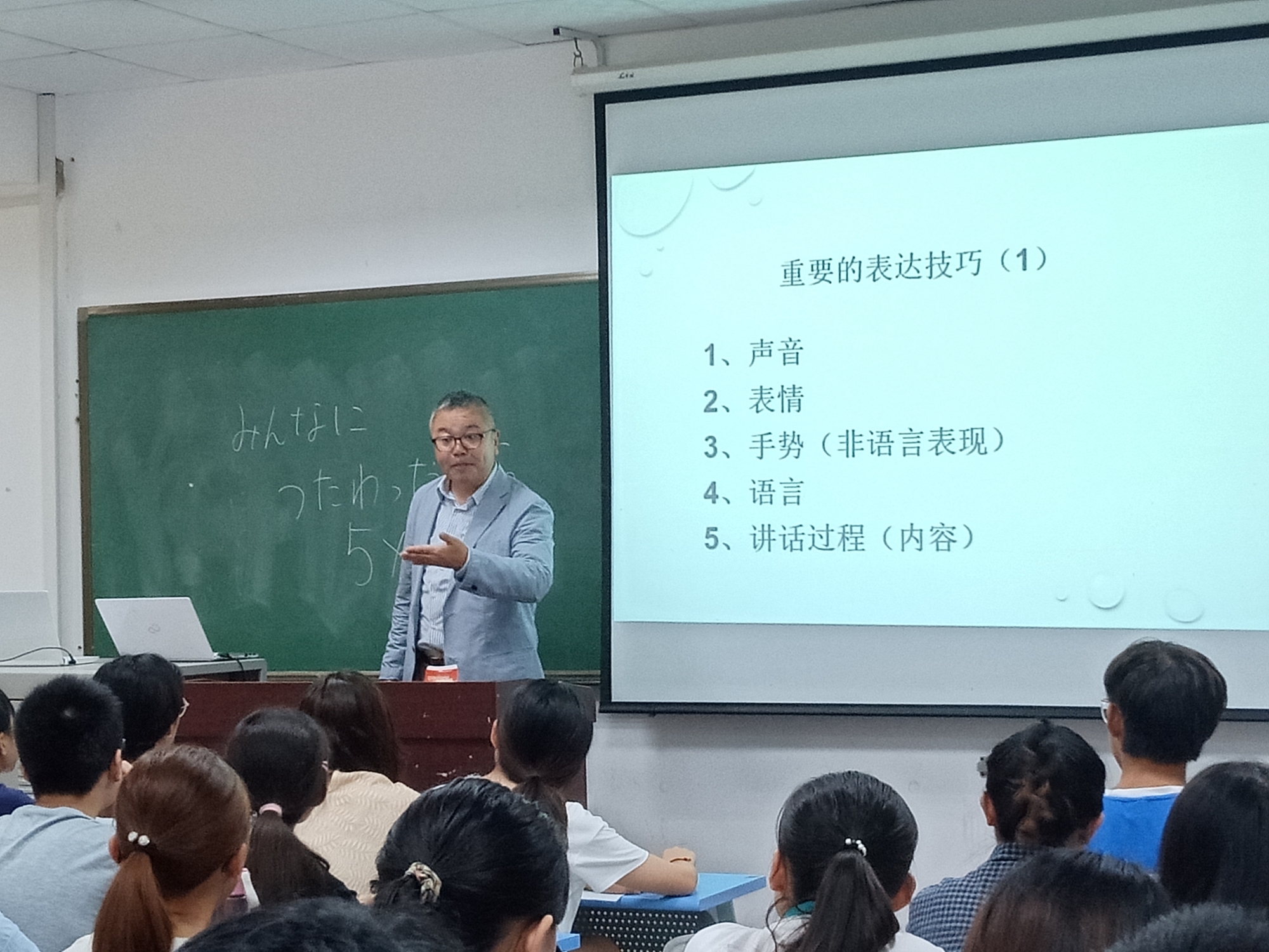 9月2日—4日,我馆邀请原NHK主播森吉弘老师分别在青岛上实中心、青岛大学、中国海洋大学举办主题讲座。9月2日上实中心的讲座主要针对在日企工作的社会人分享了“日式服务交流方式”这一主题。9月3—4日在青岛大学和中国海洋大学针对日语系学生围绕“发音方法和展示方法”“了解自己,展现自己”主题进行讲座。森吉弘老师充满活力的演讲感染了每一位来宾。五场讲座都座无虚席。来宾们的掌声经久不息。