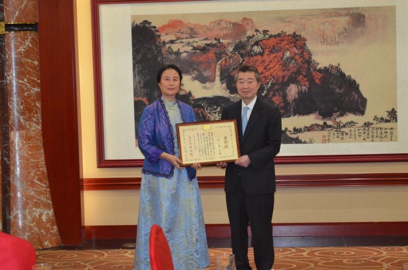 9月17日在济南市舜耕山庄向李老师颁发了外务大臣表彰并举办了纪念招待会。
