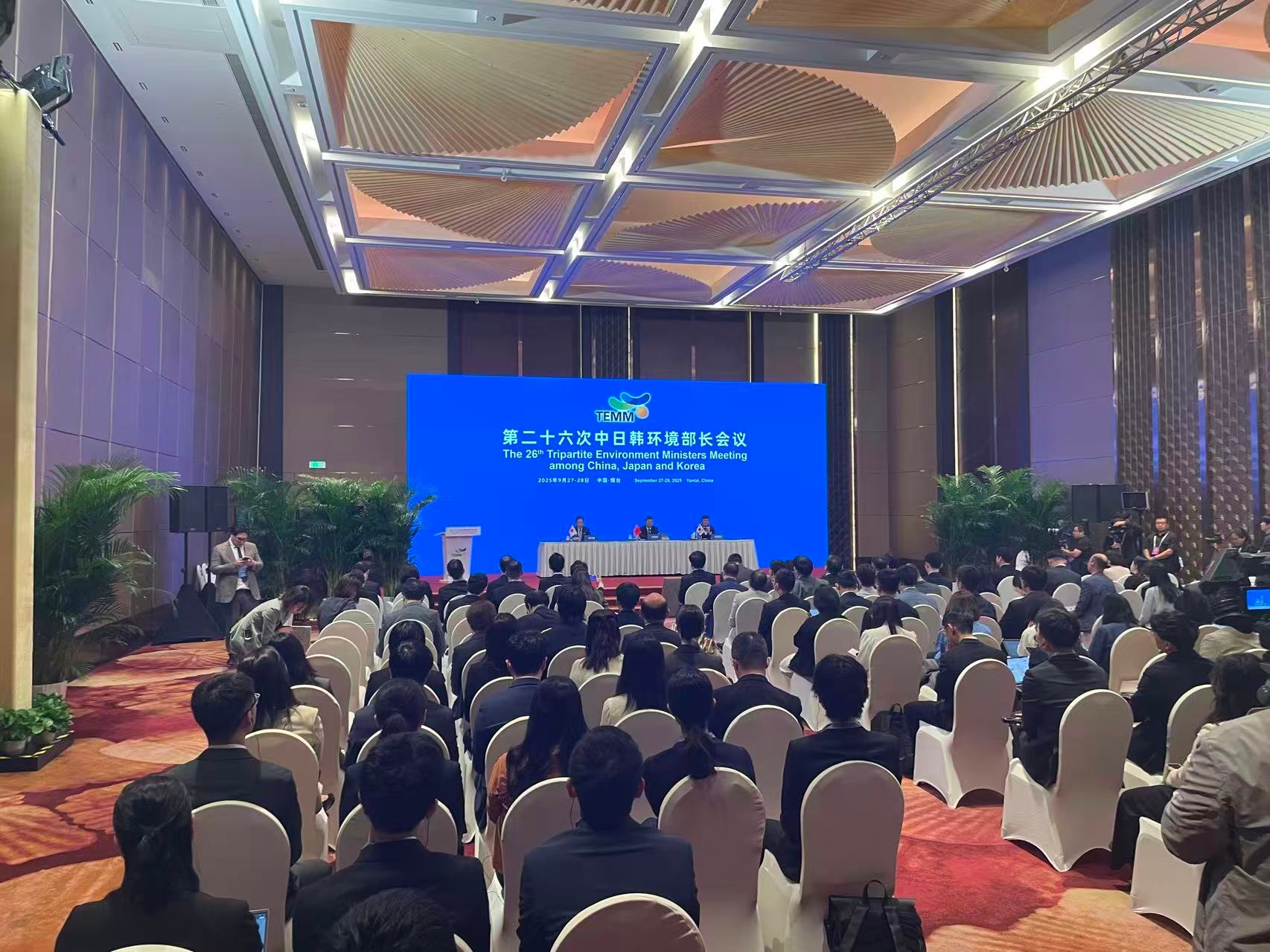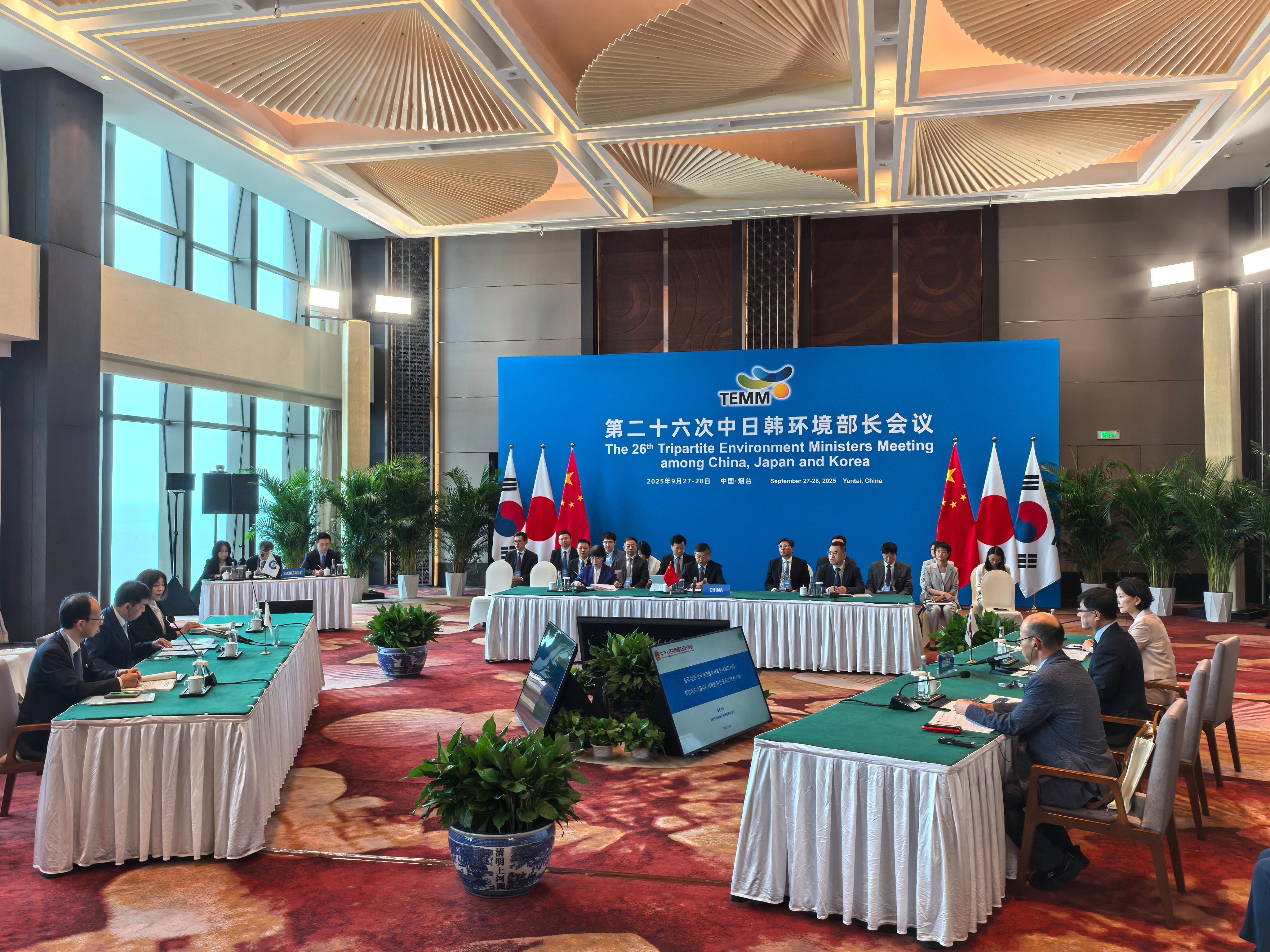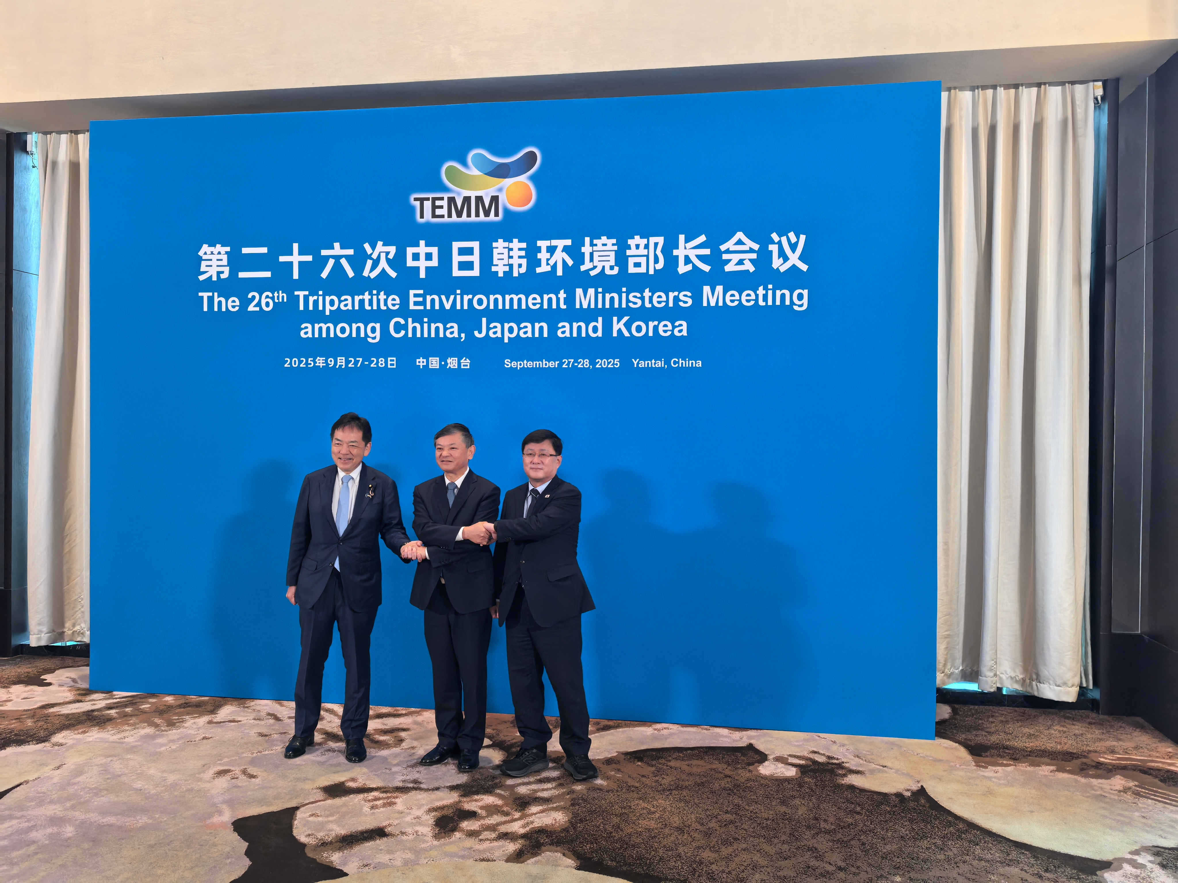 9月28日、山東省煙台市で第26回日中韓環境大臣会合が開催され、中国から黄潤秋・生態環境部長が、日本から浅尾慶一郎・環境大臣が、韓国からキムスンガン・環境部長が出席しました。当館からも、斎藤総領事ほか館員が出張し、日本側出張の支援を行いました。