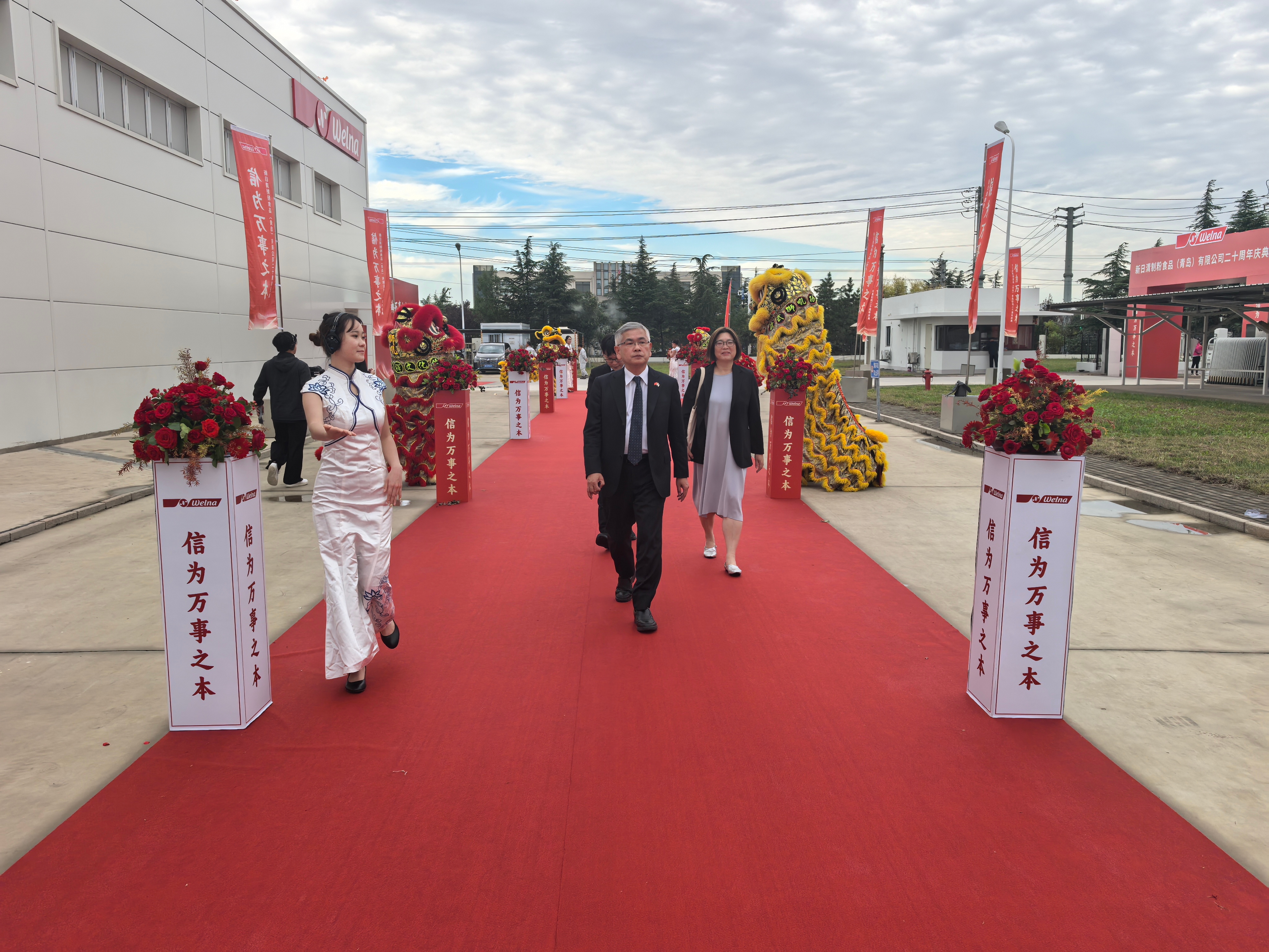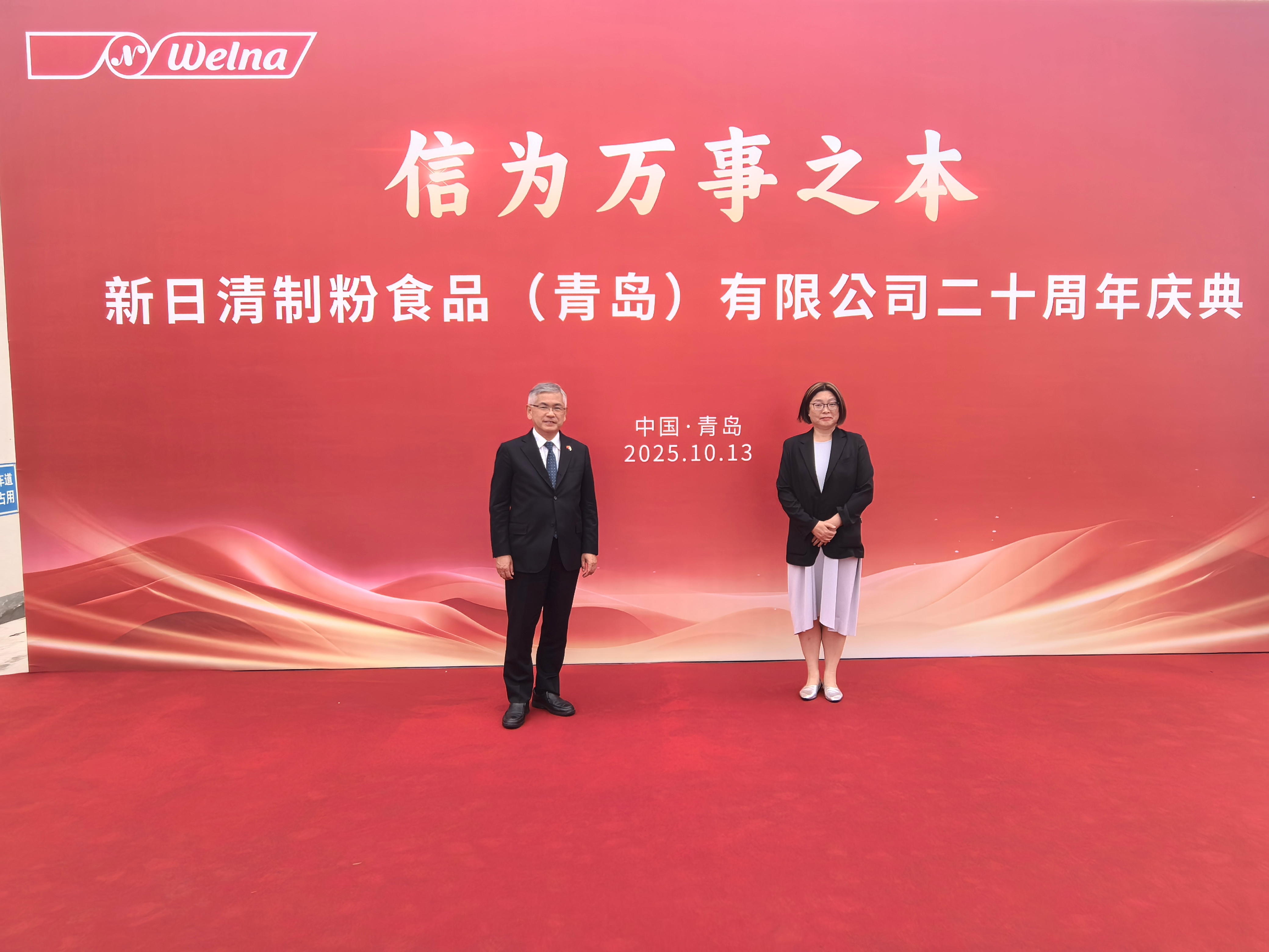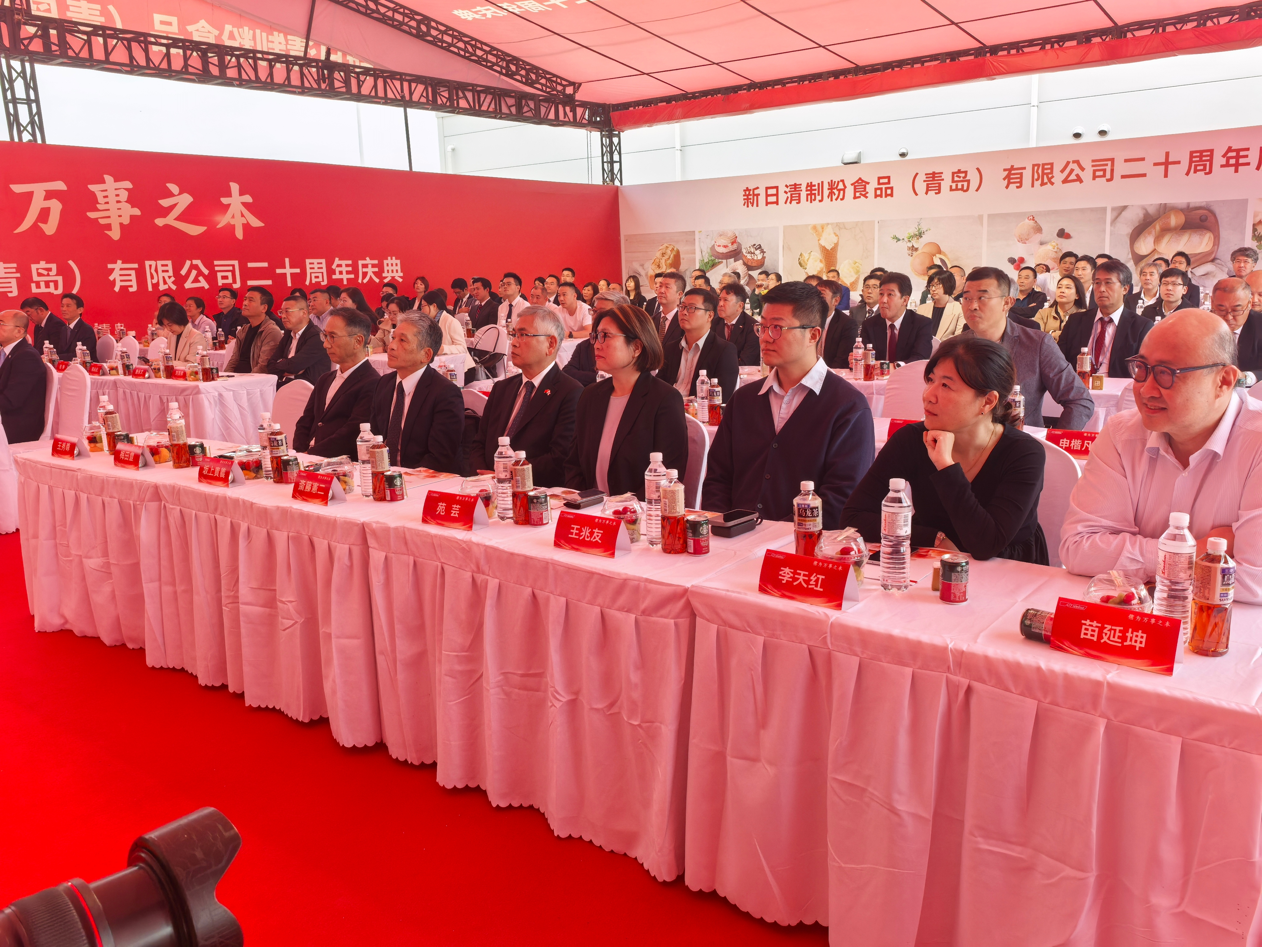 10月13日、青島市即墨区にある日清製粉グループの工場 (中文: 新日清制粉食品 (青島)有限公司)の設立20周年記念式典が行われ、当館から斎藤総領事らが出席しました。日清製粉グループは、創業から120年以上の歴史を誇り、日本市場における家庭用小麦粉の出荷量は7割弱、業務用小麦粉は約4割を占めるトップ企業です。