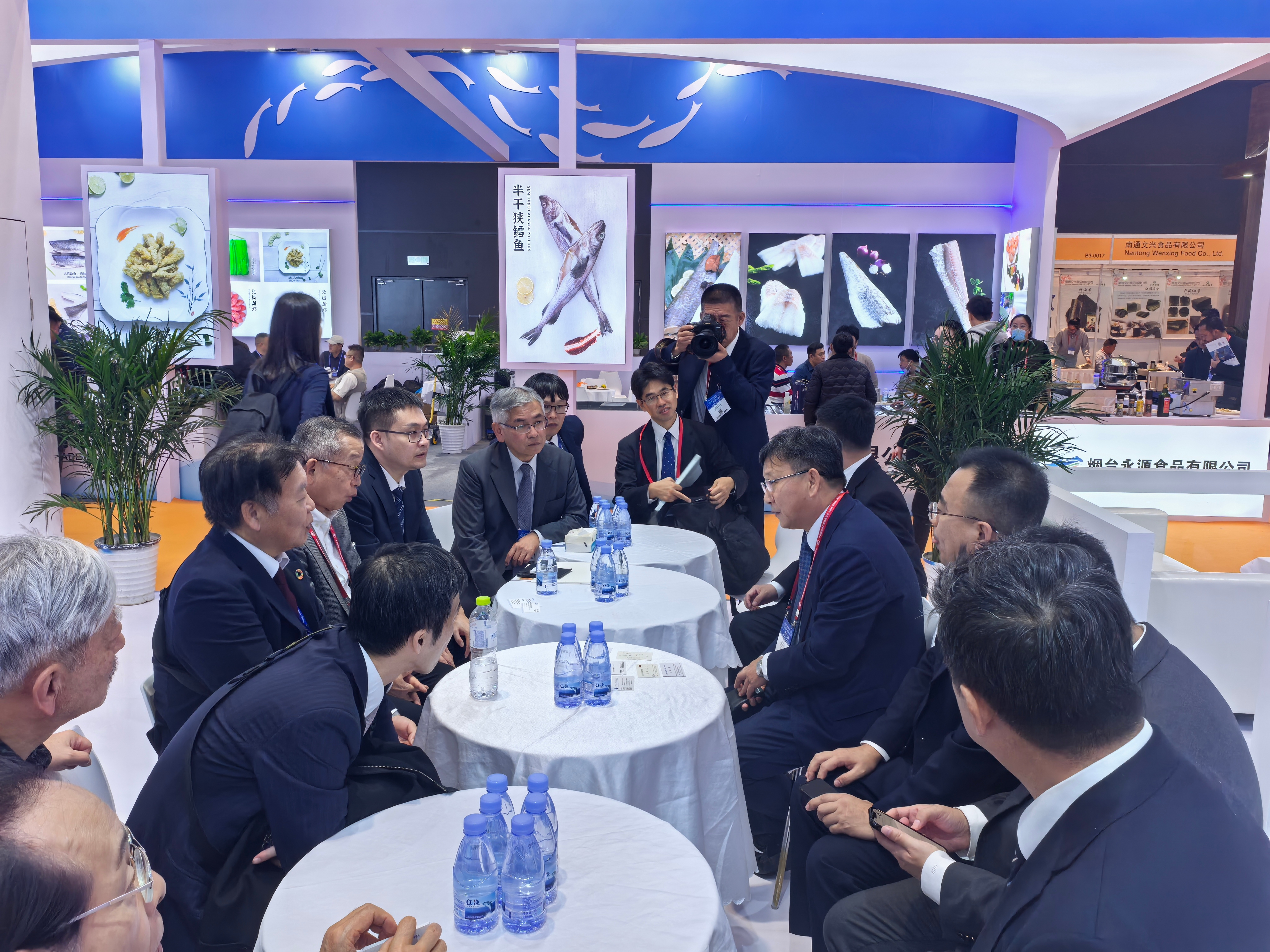 10月29日~31日、青島・紅島国際会議展覧センターで中国国際漁業博覧会が開催され、日本からもJETROや日本養殖魚類輸出推進協会をはじめ多くの水産関連企業が出展しました 。初日には日本から来訪された農林水産省の局長一行とともに、当館の斎藤総領事も会場を訪れ、各日本企業を激励してまわりました。