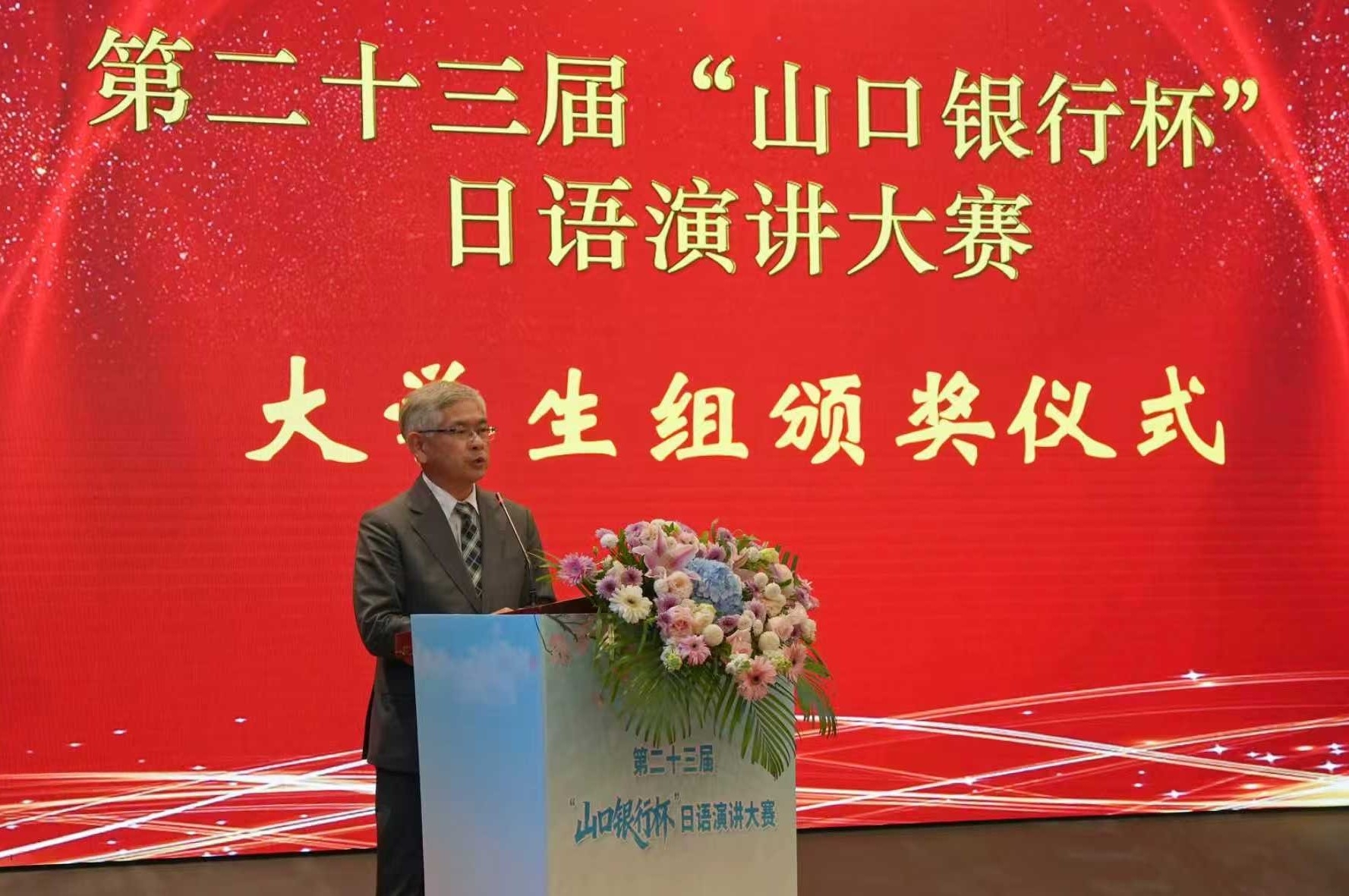 本大会には、王祥瑜・外弁副主任や宋洁・教育局副局長、当館の斎藤総領事が来賓として出席したほか、山口フィナンシャルグループの椋梨敬介社長も日本からけけつけ、ハイレベルの熱戦を間近で観戦し、感銘を受けていました。同グループの社長がこの弁論大会に出席されるのは、コロナを挟み6年ぶりとのことです。当館としては、今後とも「山口銀行杯」が青島の日本語学習者が目指す最高の目標であり続けるとともに、本大会の参加者が将来、下関市と青島市、ひいては日本と中国の友好の架け橋となってくれることを願っています。