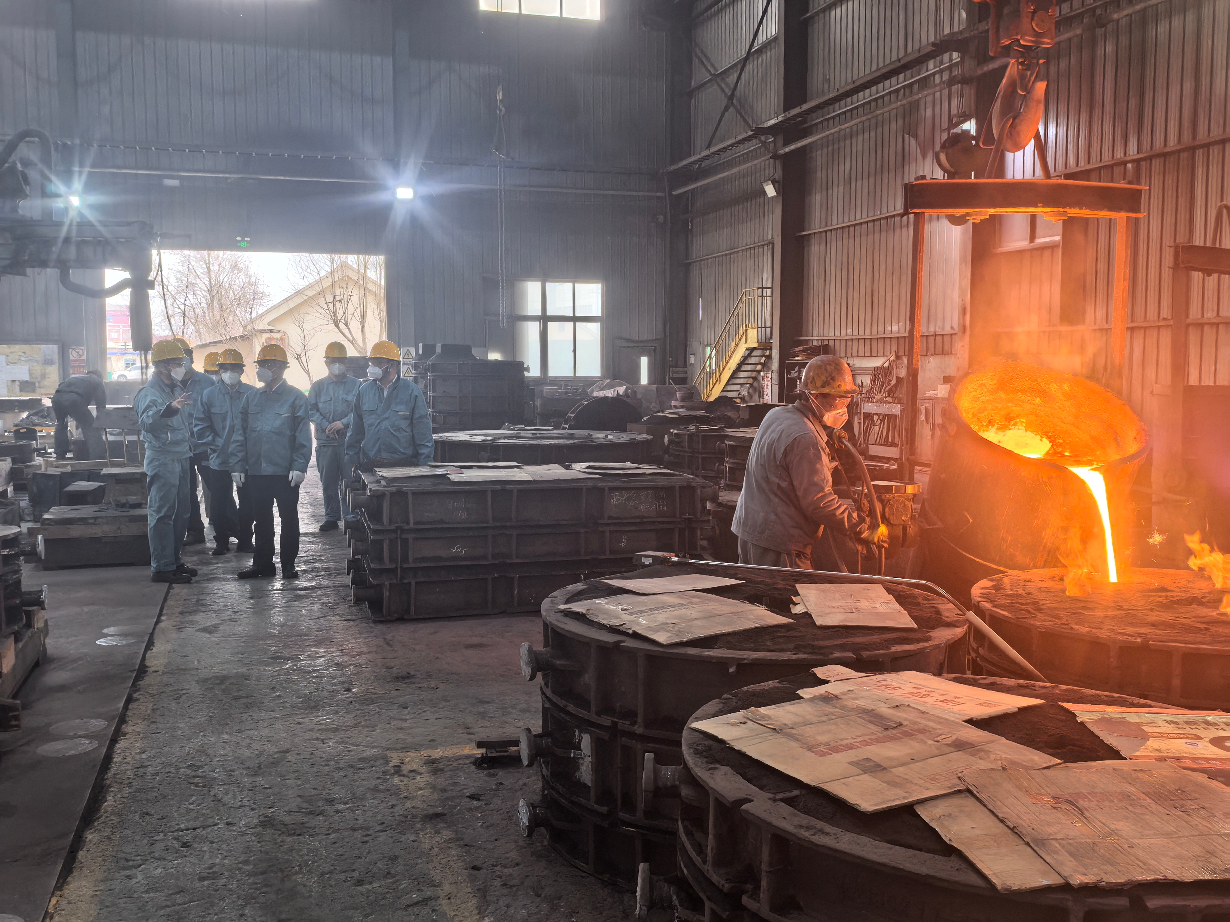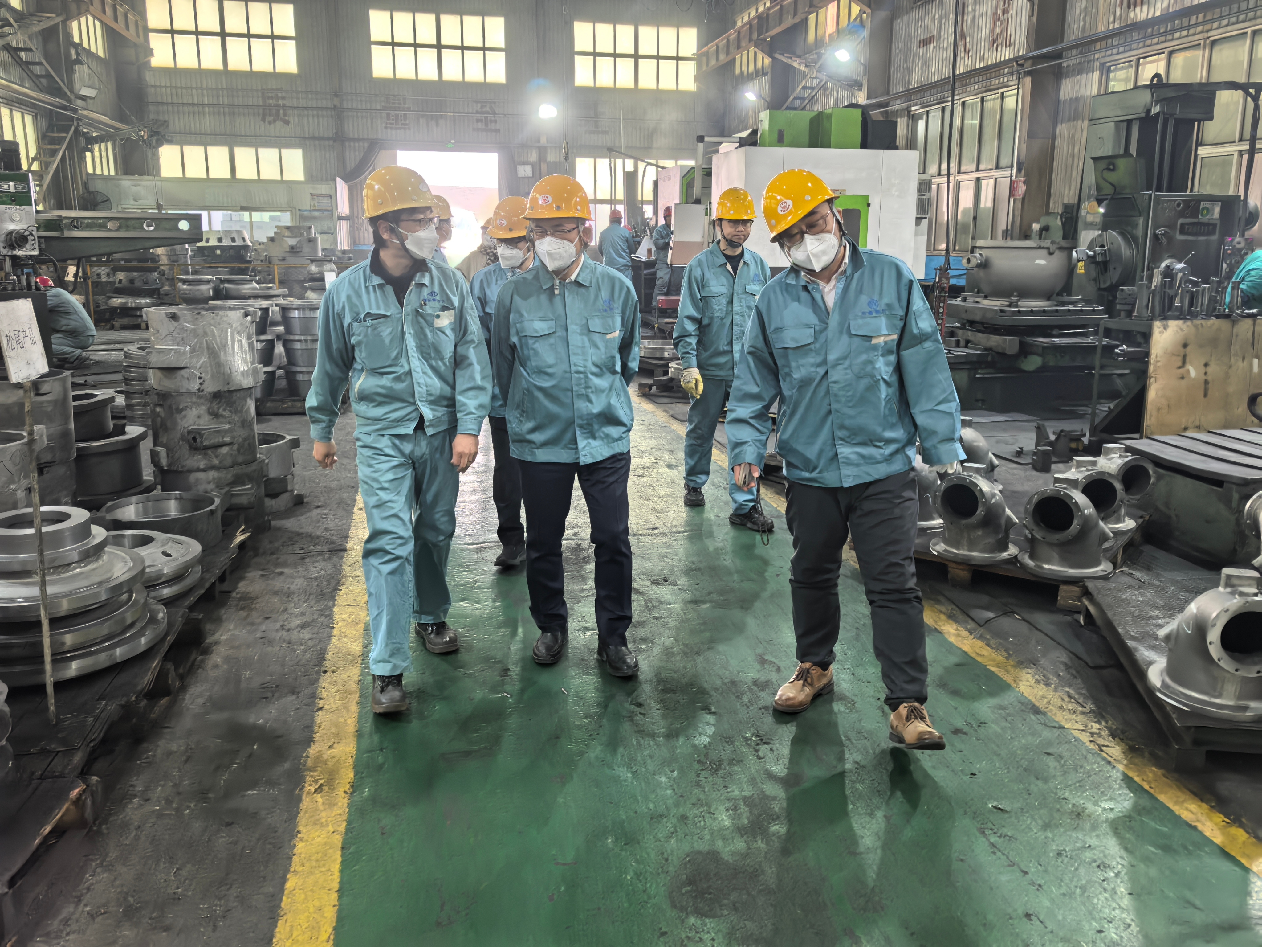 2月10日, 正在诸城出差的斋藤总领事访问了日本石铸技术株式会社(以下简称为“石铸技术”)位于当地的制造基地——诸城石龙阀门有限公司(以下简称为“诸城石龙阀门”)。石铸技术是一家从事船舶发动机配件及阀门配件等重工业用铸件委托生产的企业,其优势在于拥有从木模制作到生产、加工、组装、检测的完成工艺流程。