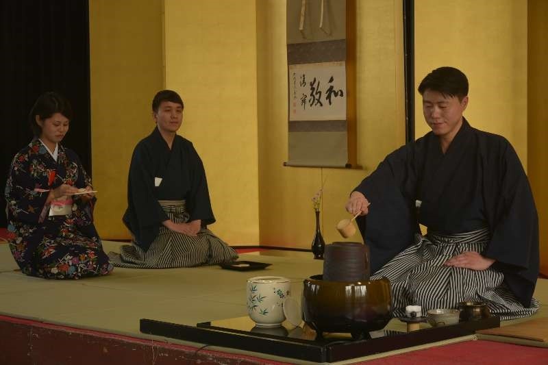 3月4日,茶道里千家常驻大连讲师国见宗惠老师以及里千家大连同好会的各位应邀前来,在山东师范大学举行了茶道表演。