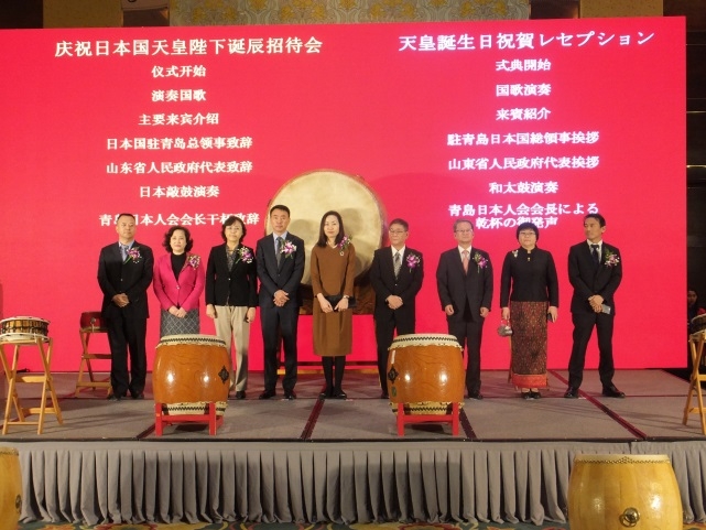 本馆于12月14日举办了2017年庆祝天皇陛下诞辰招待会。山东省人民政府外事办公室陈白薇副主任、青岛海关薛原副关长、青岛市人民政府外事办公室高群巡视员、中国国际贸易促进委员会青岛分会初连玉巡视员、青岛市商务局徐健副巡视员、驻青总领事馆官员、青岛日本人会能势稔彦会长等众多嘉宾莅临会场,活跃于各界的众多山东省内的中国友人、省内日本侨民也出席了本次招待会。
